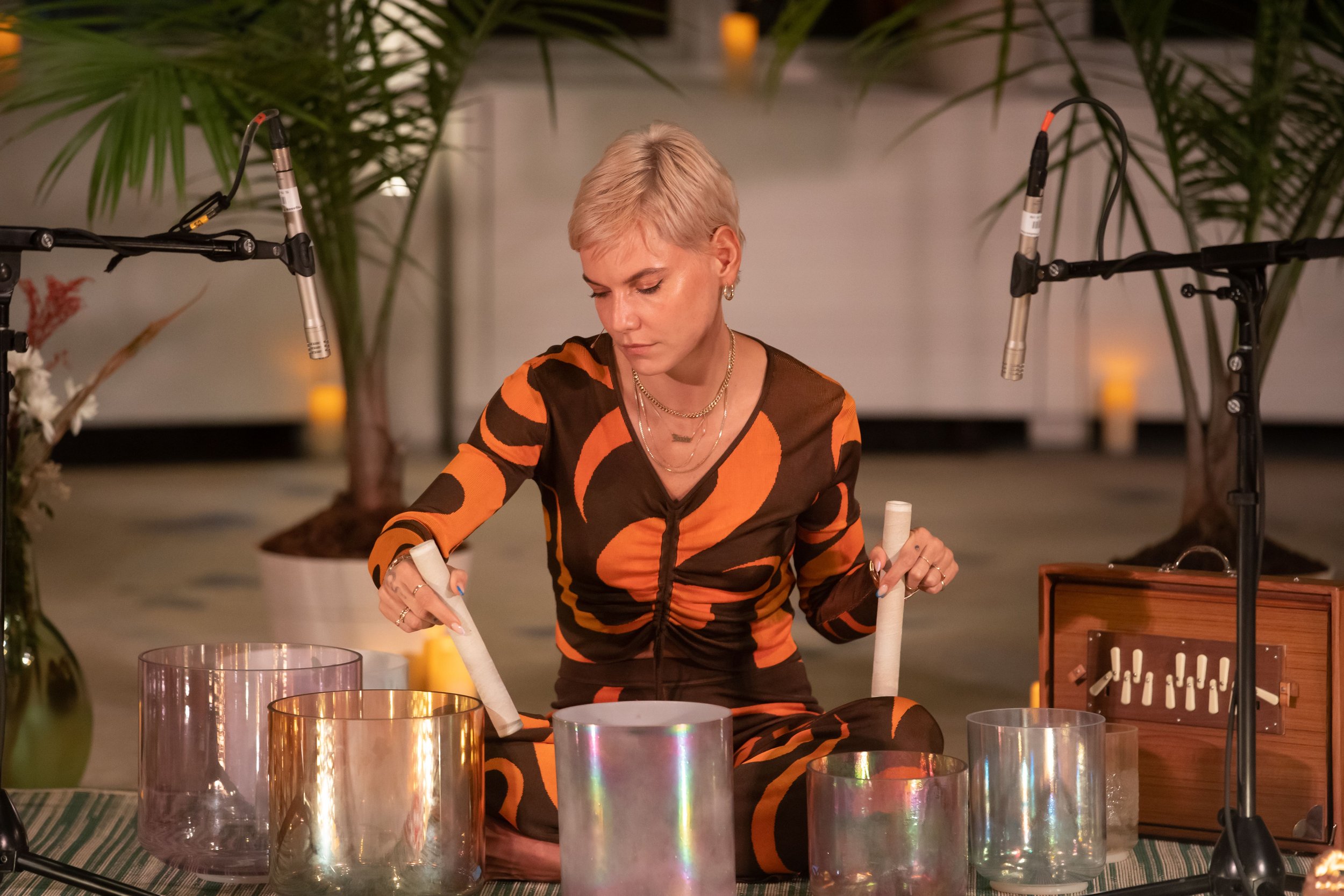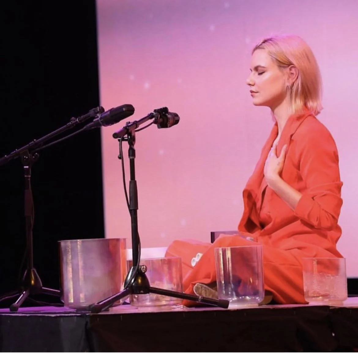 I’m a sound practitioner specializing in crystal singing bowls. I create immersive sound meditations — in intimate rooms and on large stages.